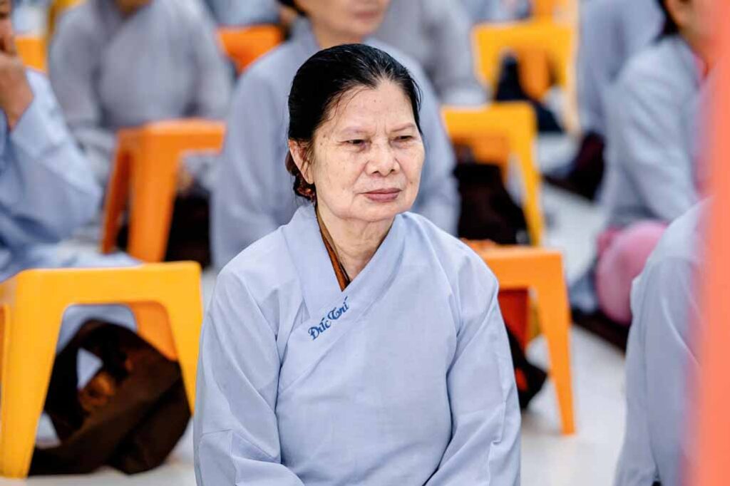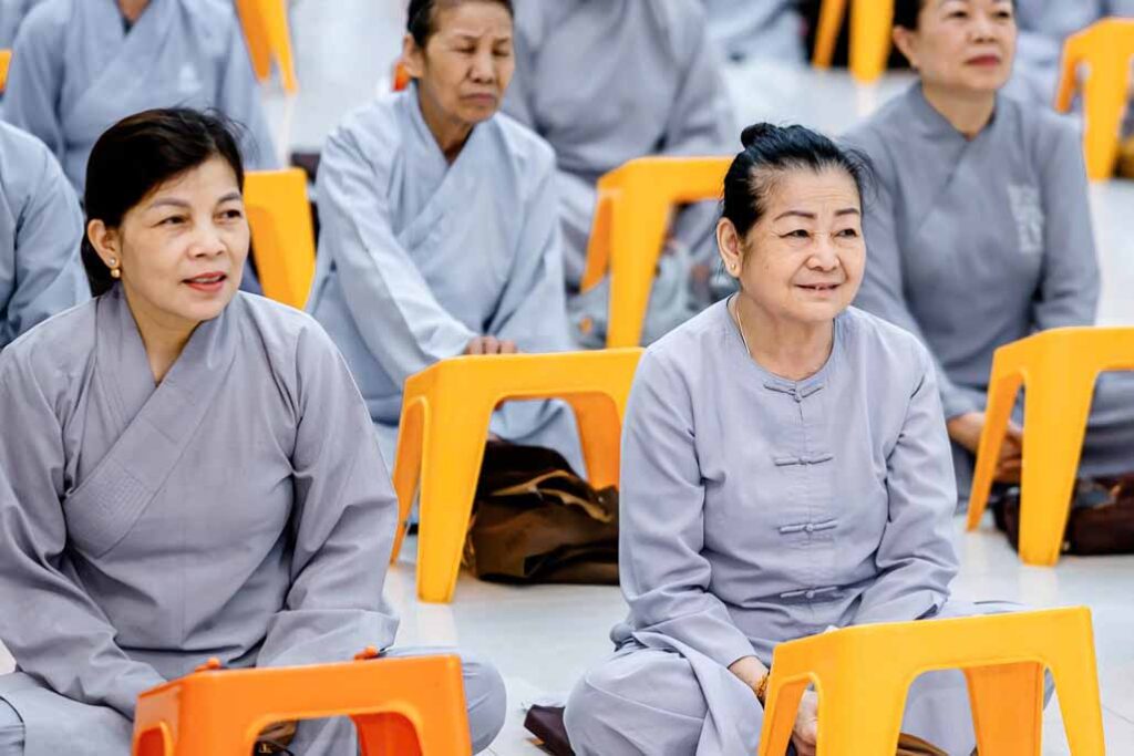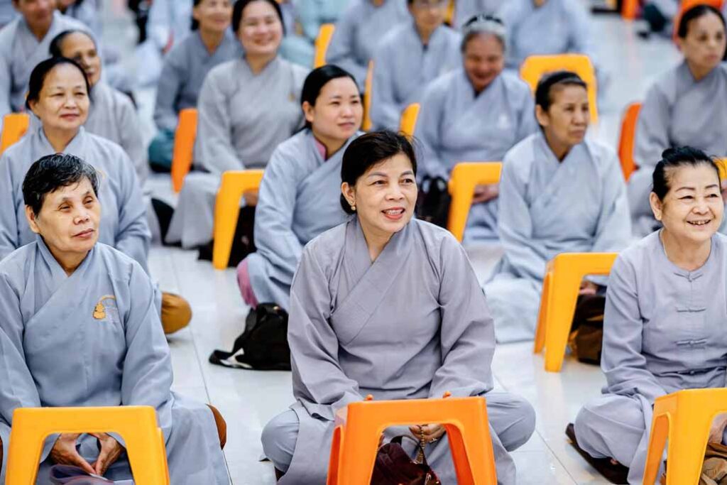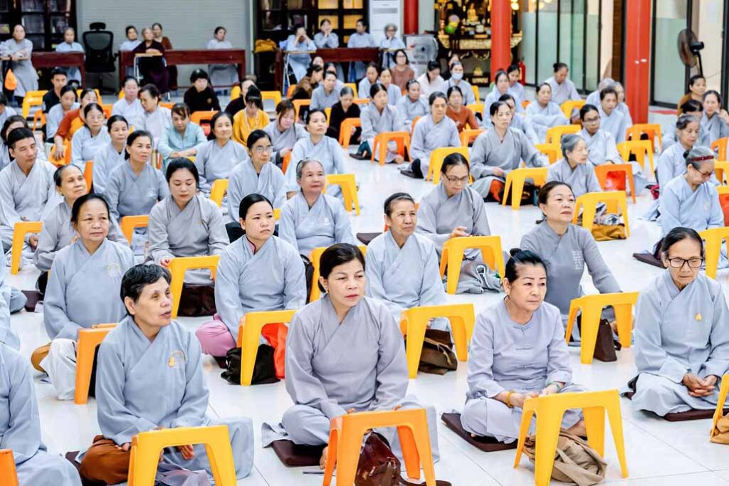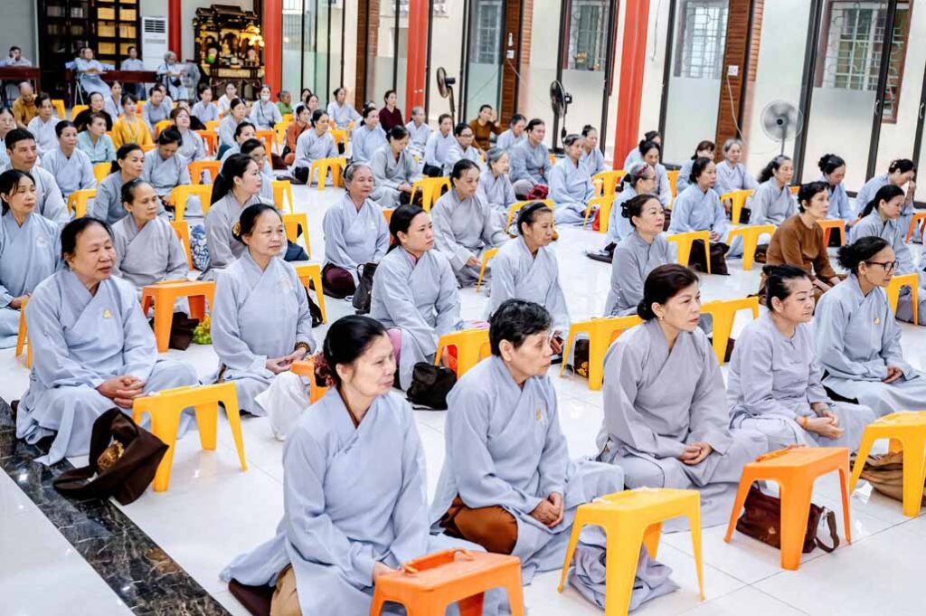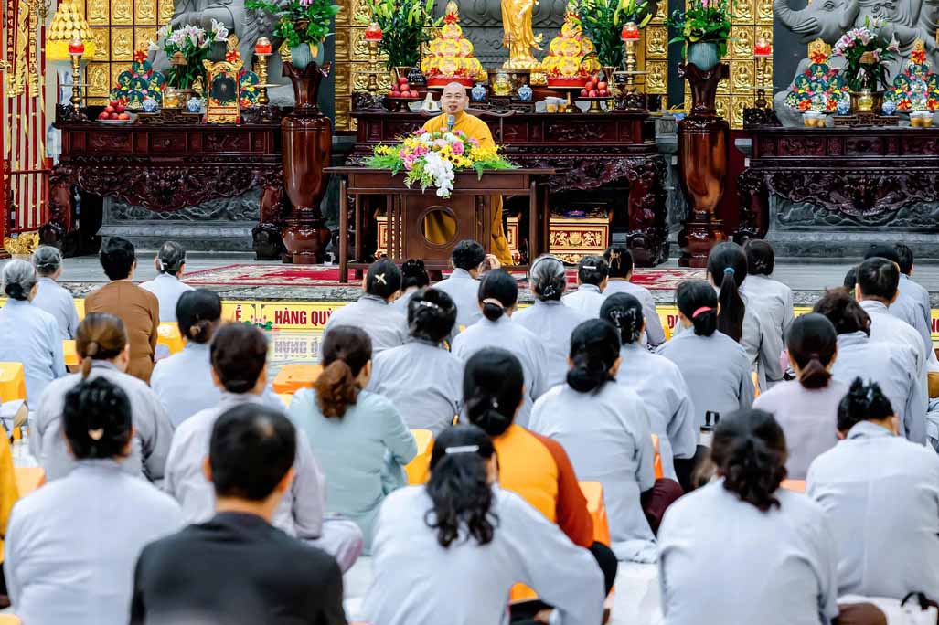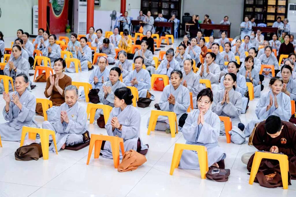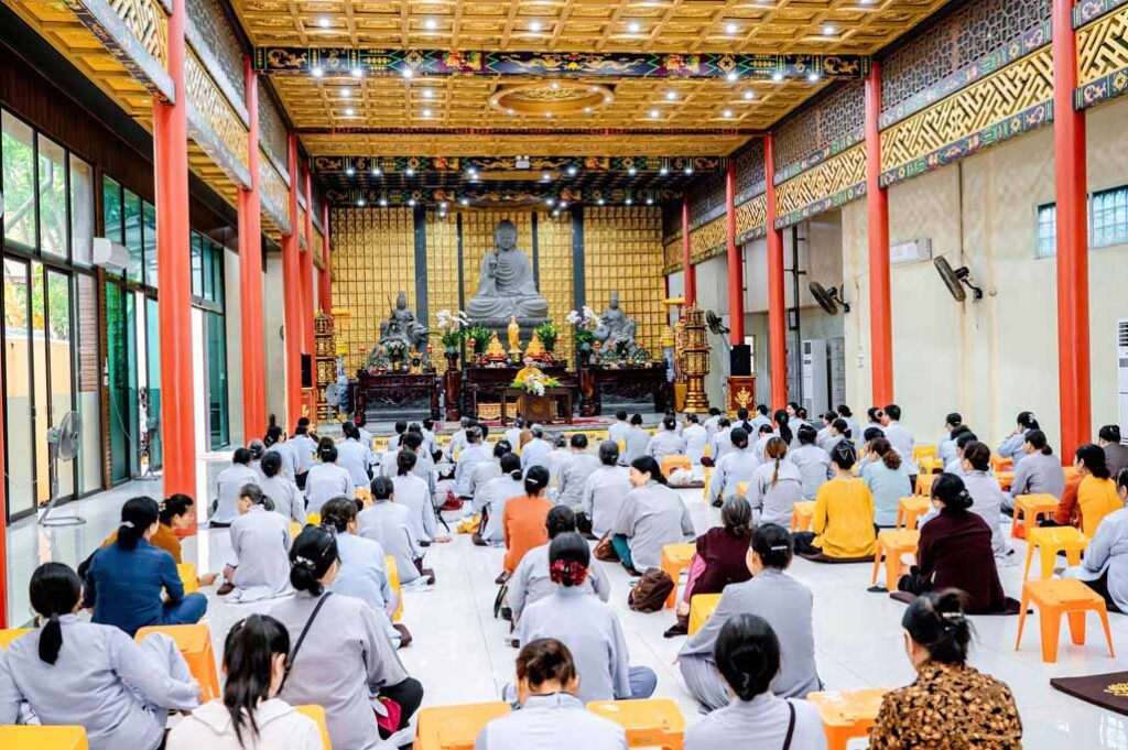 Ngay từ sáng sớm, hàng trăm Phật tử đồng trang nghiêm bước vào khóa lễ Sám hối sáu căn, thành tâm quán chiếu thân – khẩu – ý, hướng đến việc chuyển hóa nội tâm, giúp hành giả tạm gác lại những lo toan thường nhật, trở về với sự tĩnh lặng nơi chính mình.
