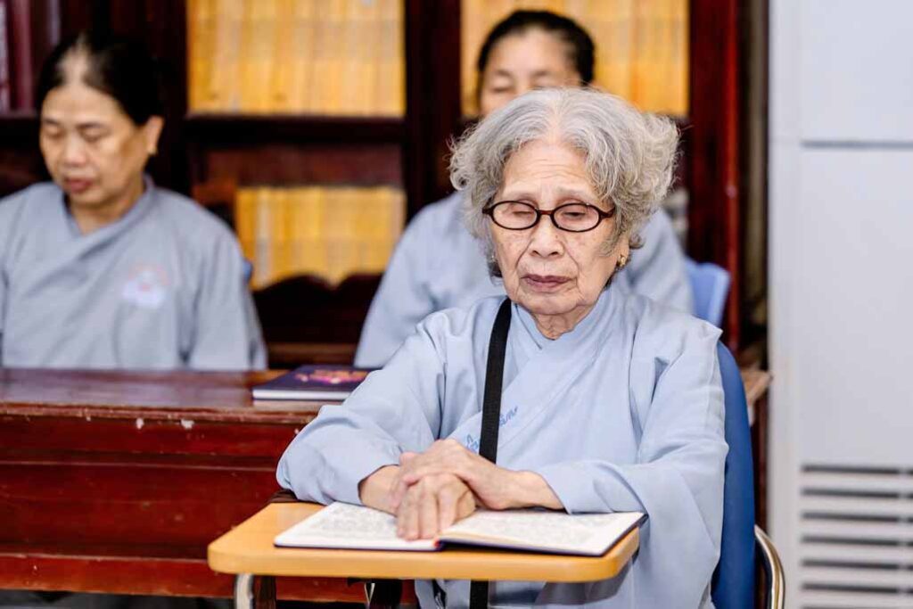 Buổi chiều, khóa lễ Kinh Dược Sư cầu an được cử hành trang nghiêm, gửi gắm ước nguyện về sức khỏe, bình an cho bản thân và gia đình. Tiếp đó là thời khóa tụng Kinh A Di Đà, phóng sinh cầu siêu, hồi hướng công đức đến cửu huyền thất tổ và chư hương linh. Nghi thức được thực hiện trong sự thành kính, trang nghiêm, thể hiện trọn vẹn tinh thần hiếu đạo và lòng từ bi của người con Phật.